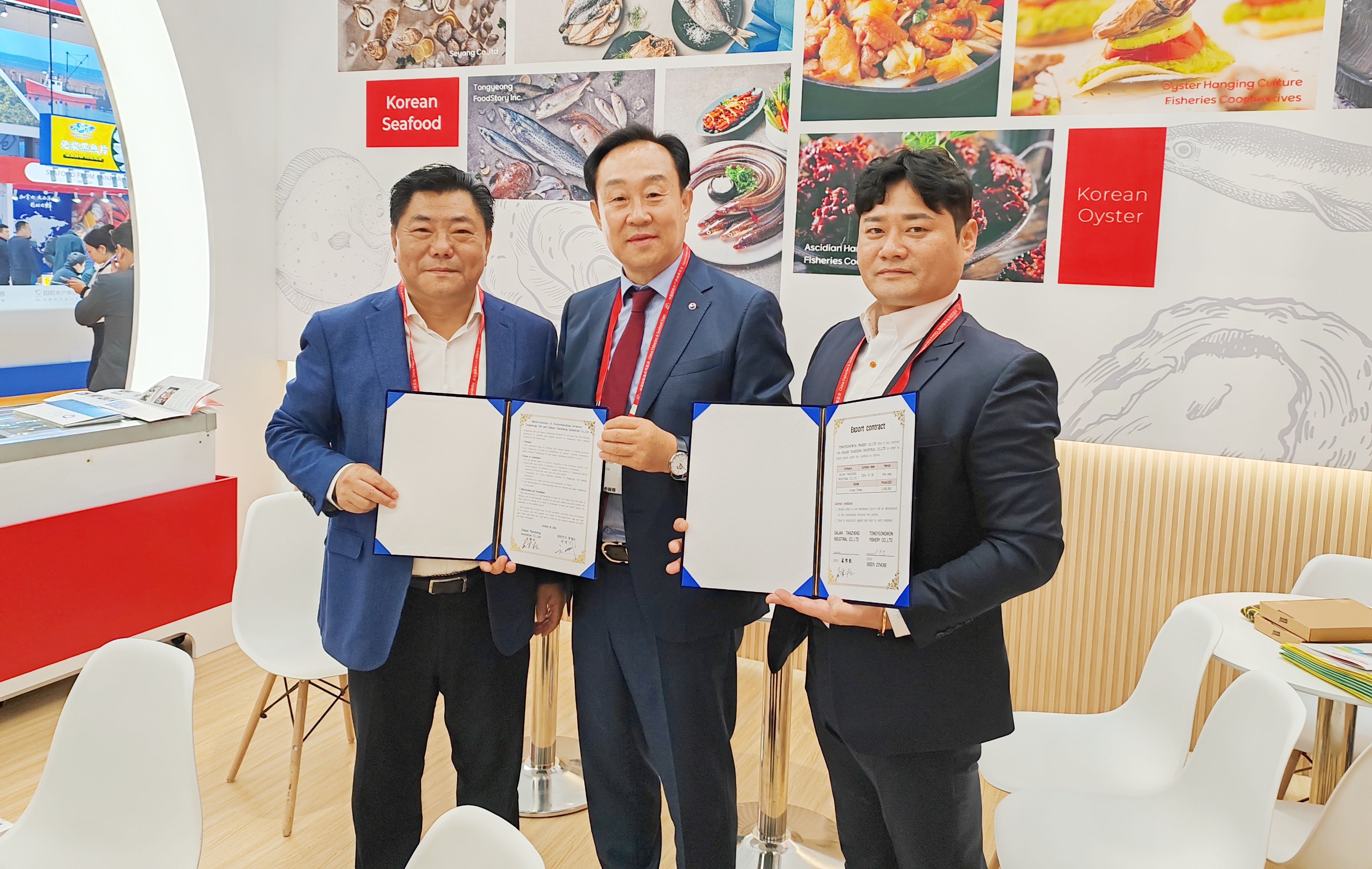 27屆青島漁博會,天正與韓國統(tǒng)營市長簽約出口協(xié)議